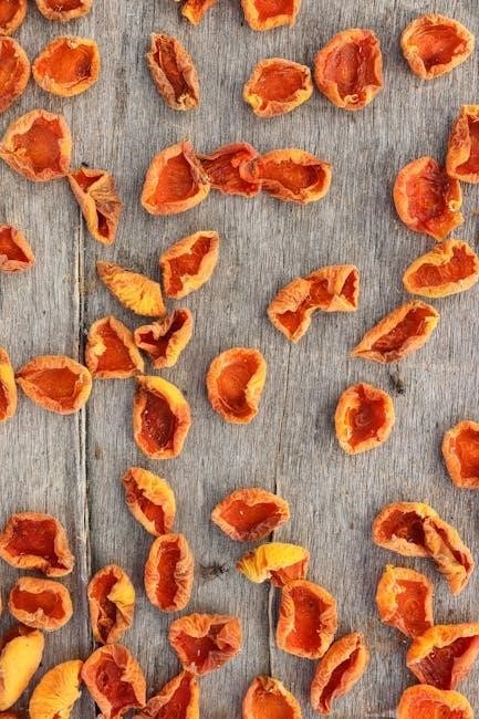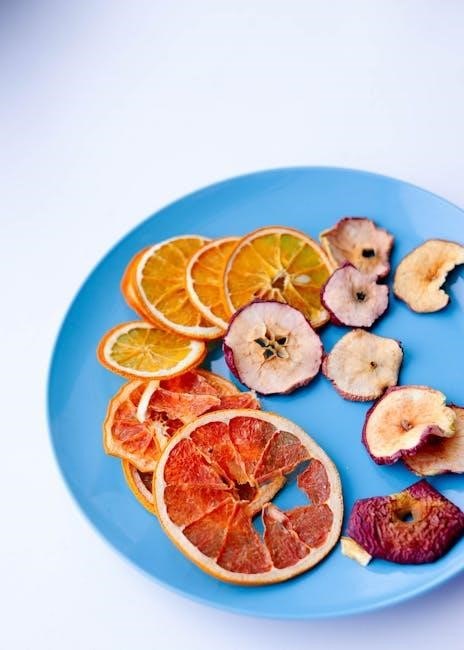 Ensure consistent slicing – ¼ inch is ideal – for uniform drying of fruits and vegetables. Blanching vegetables briefly halts enzyme activity‚ preserving quality. Treating cut apples‚ bananas‚ and peaches with lemon juice prevents browning. Proper preparation maximizes flavor and extends shelf life.