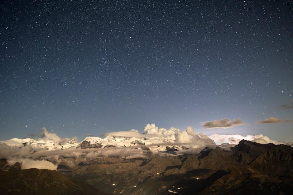 Thunderstorms in mountainous regions are complex natural events shaped by geography and climate․ These storms are characterized by heavy rain‚ lightning‚ and strong winds‚ often intensified by the unique topography․ Mountains act as barriers‚ forcing air to rise‚ cool‚ and condense‚ creating unstable atmospheric conditions․ This process leads to the formation of cumulonimbus clouds‚ which drive thunderstorms․ The topic explores the intersection of meteorology‚ geography‚ and ecology‚ providing insights into how these storms impact environments and human activities․ Understanding their dynamics is essential for predicting patterns‚ mitigating risks‚ and appreciating their role in shaping mountain ecosystems and influencing local weather systems․